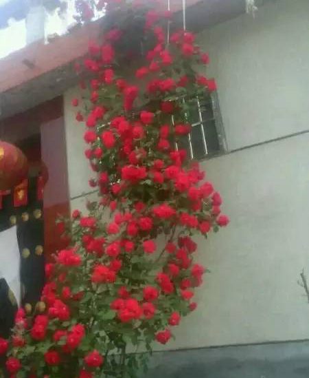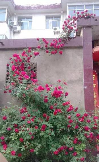要是我家門口能有這樣一顆藤本月季,過年我春聯(lián)都不貼了,夠紅火了!